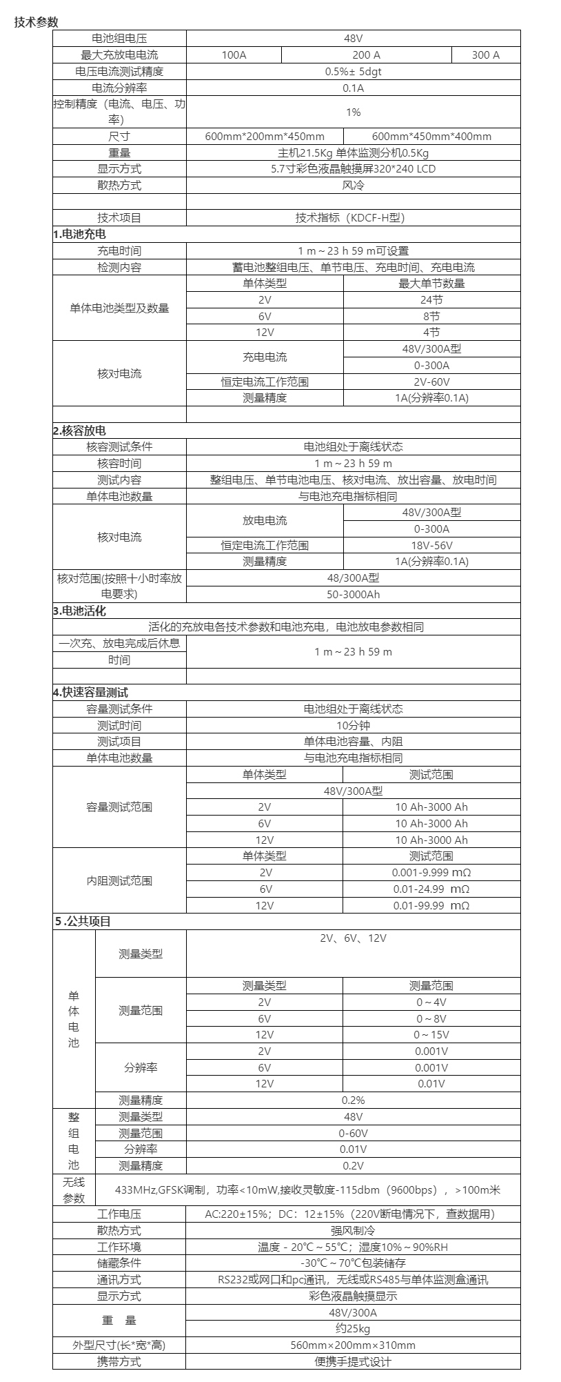 1.可對整組電池進行充電、放電、活化、在線監測、快速核容;
